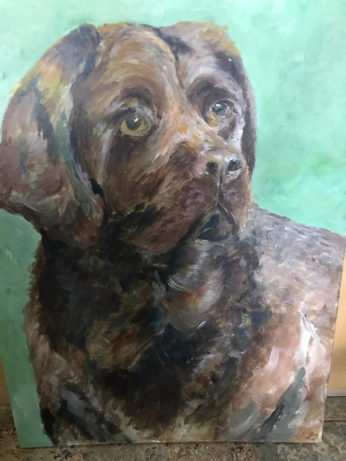 Kortom: een uniek en stijlvol kunstwerk dat perfect is voor iedereen die houdt van honden, sfeer en karakter in huis.